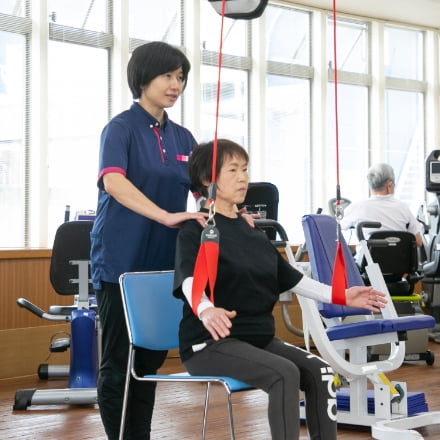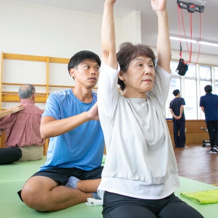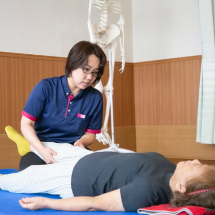 一人ひとり身体の作りや動きが違えば、痛みなどの症状も異なります。当施設では、より効果的なトレーニングをしていただくために、骨格・関節の仕組みや筋肉の動き、循環など身体機能を熟知した理学療法士が、まず利用者様の痛みを除去。一人ひとりの体に合わせたマッサージやストレッチで体を整えます。